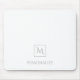 A professional white and grey mousepad with a simple modern square monogram and a template to personalise with a name.