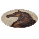 The beauty of this dark horse is perfectly captured by two simple colours: brown and beige and the sharpness of the ink used in this painting makes it even more realistic. This contemporary fine art print representing a profile of a brown stallion will add character to any living room, dining room or bedroom.