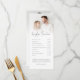 Program and Menu 2 Photo Overlay Wedding. A dual purpose design combining your reception timeline with your menu on the other side. An informal set typography in black for the main headings Menu and Reception timeline, complementing the rest of the text which you can easily personalise. Replace the sample photos on each side with your own favorites.