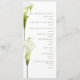 This flat lay wedding program features a sophisticated, minimalist style. Delicate calla lilies in soft green hues are depicted against a light background, creating an atmosphere of sophistication and tranquility. The design is modern, airy, and perfect for a stylish, romantic wedding.