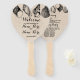 The fans are very pretty and easy to assemble. We utilized the original template and just inserted the names of our wedding party. After the product arrived we noted they read,”Made of Honor” rather than “Maid of Honor”. Upon re-checking the website we noticed the typo is in the original template and was not a mistake on our end. It is too late to return because our wedding is in just a few days but if we had time we would certainly request an exchange. See review above regarding typo.