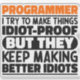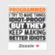 Funny Programmer Sayings "Programmer I Try To Make Things Idiot Proof But They Keep Making Better Idiots". Grab this Funny Programmer design as a funny gifts for an awesome mum, dad or friend.