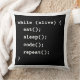 A minimalist code snippet representing the relentless life cycle of a passionate software developer. A great geeky joke for a programmer's t-shirt, hoodie, or sticker.
