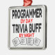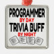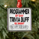 This ornament featuring the quote "Programmer by Day Trivia Buff by Night" is perfect for any programmer that loves playing trivia.