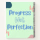A special colourful design with a motivational quote. A green notebook with a quote in the middle "Progress not Perfection", with some coloured spots in the corners which add a cheerful and motivational feeling for the design. This design is suitable for a student, an employee or for a business owner, also it may be a gift for a startup business owner.