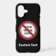 Prohibiton circle sign with custom image. Custom background colour. Custom text.