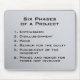 1. Enthusiasm 2. Disillusionment 3. Panic 4. Search for the guilty 5. Punishment of the innocent 6. Praise and honour for those not involved