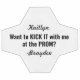 Ask a girl or boy to prom in style with this personalised promposal soccer ball. Design features a modern calligraphy script typography and customisable message that reads "Want to KICK IT with me at the prom?" All the text is simple to customise, so it can easily be used for any dance, such as homecoming, winter formal, etc. A cute alternative to a promposal poster or sign, this is an elegant idea that will definitely impress her or him. Perfect for a student athlete or anyone interested in sports.