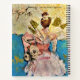 Promises of peace mixed media art journal. Vibrant painting of a ballerina "angel" with gold dipped wings. Gold and blue.