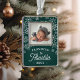 Celebrate his first Christmas as a grandmother with this sweet photo ornament featuring a baby photo framed by falling white snowflakes on a forest green background. "Promoted to Abuelita" appears beneath in white rustic lettering, along with the year.