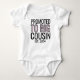 This particular design features a cute saying printed on the front that reads "Promoted to big cousin." The text is likely to be in a playful and childlike font that adds to the lighthearted and joyful nature of the message. The phrase "Promoted to big cousin" suggests that the baby has a new family member, a younger cousin, and celebrates the excitement and responsibility of that new role. The design is likely to appeal to parents or caregivers who have an expanding family and who wish to acknowledge the important milestones and transitions that occur as a result. The message is fun and endearing, highlighting the special bond between cousins and the joy that comes with welcoming a new member into the family.