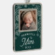 Celebrate his first Christmas as a grandmother with this sweet photo ornament featuring a baby photo framed by falling white snowflakes on a forest green background. "Promoted to Mimi" appears beneath in white rustic lettering, along with the year.