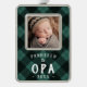 Celebrate his first Christmas as a grandfather with this sweet photo ornament featuring a baby photo framed by classic green and black buffalo plaid. "Promoted to Opa" appears beneath in white rustic lettering, along with the year.