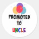 Promoted to Uncle, colourful design, Classic Round Sticker