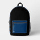 Promotion Company Logo Name Striped Blue Black Printed Backpack is prepared as template to easily replace company logo and company name. It is part of the Blue Business Card Designs & Marketing Items collection. The blue and black bag complements the professional collection as merchandise or promotional gifts.