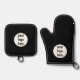 A modern black minimalist personalised business Oven Mitt & Pot Holder Set with business logo. Personalise with your logo to create your own design. A perfect customised corporate design ideal for the employee gifts, seminars, expos, meetings, promotions etc.
