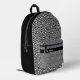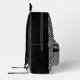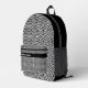 The Promotional Company Logo Name Black & White Printed Backpack shows a classic square pattern and is designed as a template to easily replace company logo and name on the front pocket. It is part of the Black & White Business Card Designs & Materials collection. The black and white diagonal tiles pattern commute bag complements the professional collection as merchandise, reward, or promotional gift.