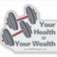 The Personal Trainer Promotional Dumbbell Your Health = Your Wealth Sticker is part of the "Grey & White Fitness Business Cards & Marketing" collection. Customise it by adding your company name or website or hashtag.