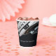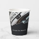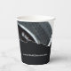 A promotional photographer's black and white paper cup displays the customisable company tagline, company website, and QR code. For assistance or to discuss a custom design, contact https://t.me/KBMD3signs_chat.