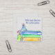 A colourful business card featuring a stack of books and flower bouquets sketched with ink and watercolor on a light grey background with a space for business name on the front. On the back is the same shade of grey with areas to put your business details.
