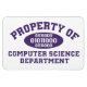 Property Of Computer Science Department - dark purple collegiate style lettering with binary code Xs.