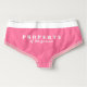 Custom bridal panties with the words, in white, "property of the groom" (back) and, at the front, "Mrs." with last name. Easily personalise funny bridal panties with your favourite colours and fonts.