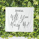 Black and white "Will you marry me?" sign with a custom name. Proposal decorations to surprise a girlfriend or boyfriend and ask them to marry you.