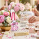 An elegant Bridal Shower design with dusty pink pearls, a perfume bottle and a glass of prosecco!