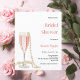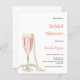 A modern, stylish and glamourous invitation for a Pearls and Prosecco Bridal Shower. A white background with a glass, flute with pink bubbles and pearls. The name is written with a modern hand lettered style script. Personalise and add your party details.