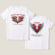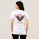 "PROSPERITY AND LIGHT" Tri-Blend Shirt, a modern T-shirt with a bold artistic print on the back. The main visual element is a composition of bright red roses, green leaves, and decorative swirls that form the shape of angel wings or a heart. Dripping paint or watercolor elements for a soft artistic effect, the phrase "PROSPERITY AND LIGHT" is slightly curved on top in a bold, elegant serif font. On the bottom is the quote: "In every dream lives the magic of possibility" in a quirky vintage font. The colour scheme includes reds, greens, and soft pinks on a white background. Style: fashion illustration, modern boho-chic, high-resolution digital print, suitable for street or boutique fashion.