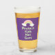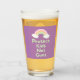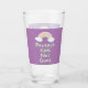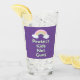 Drinking glass with "Protect Kids Not Guns" text in mint green handwriting style font and pastel rainbow graphic on purple background.