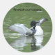 Stickers with photo of Common Loon. Protect our Loons is enscribed on front. Different sticker sizes available.