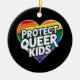 Protect Queer Kids Rainbow Heart LGBT Pride Ceramic Tree Decoration