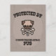 Cute tough little pug and crossbones with, "Protected by - vicious trained attack pug" lettering. Lightly distressed graphic, on t-shirts, hoodies, cards, gifts.