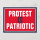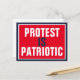 Protest is patriotic and a basic first amendment right. Design description: As shown, white and blue text on a red rectangle. Midnight blue background. Text: Protest is patriotic.