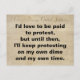 Text: I'd love to be paid to protest, but until then, I'll keep protesting on my own dime and my own time.