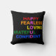 This 16 x16 PROUD - happy, fearless, loving, grateful & confident - rainbow pillow is a great way to show your love for the LGBTQ community. It would look great tossed on a chair, couch or bed.