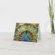 Glorious majolica peacock struts its stuff on this dramatic note card.