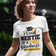 Celebrate your best friend's graduation with this modern t-shirt featuring a "Proud BESTIE of a 2023 Graduate" typography in black and gold fonts decorated with a black grad cap with a golden tassel; easily personalise this t-shirt with the graduation year and the grad's name by editing the template fields.