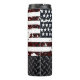 This graphic prominently features the phrase "PROUD BLUE COLLAR AMERICAN" at the bottom, set against a dark metallic diamond plate background. The upper portion displays a distressed American flag design with black splatter effects, evoking a rugged, patriotic feel. A central circular emblem showcases a strong fist clenching a wrench, symbolising hard work and industrial pride.
