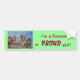 Proud Farmer Bumper Sticker. this bumper sticker is decorated with a painting of a grain silo and a farmer and his tractor. The words "I'm a farmer and proud of it" appear beside the painting.