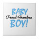Blue and black text design Proud Grandma of a Baby Boy keepsake boxes, tiles, ornaments, notebooks, pitchers, mugs, cards, stickers, magnets, mousepads, and other Proud Grandma apparel and gift items.