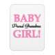 Proud Grandma of a Baby Girl keepsake boxes, tiles, ornaments, notebooks, mugs, cards, stickers, tote bags, magnets, keychains, and other proud grandma apparel and gift items with pink and black text.
