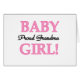 Proud Grandma of a Baby Girl Tshirts, hoodies, mugs, cards, stickers, tote bags, magnets, keychains, and other proud grandma apparel and gift items with pink and black text.