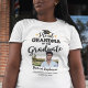 Celebrate your grandson's or grandaughter's graduation with this modern t-shirt featuring a "Proud GRANDMA of the Graduate" caption in black contemporary fonts decorated with a grad cap with a golden tassel. Easily customise this t-shirt with a picture of the graduate, the graduation year, and the school's name by editing the template fields.