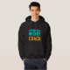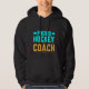 Hockey coach hoodie with aqua blue and gold text reads Proud Hockey Coach.