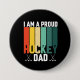 Proud Hockey Dad button features several colours of green, off white, yellow, and rust orange on a black background with white text that reads I Am a Proud Hockey Dad!