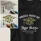 Features white modern script typography that includes graduates name and high school name with a hand drawn floral graduation cap silhouette utilizing sunflowers that represent optimism and bright futures. Perfect as a wearable keepsake for the mom of a graduating son or daughter and celebrate and show support for them during their special milestone