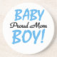 The proud new mum of a baby boy who wants to announce it to the world will love these blue and black text design Proud Mum keepsake boxes, tiles, ornaments, notebooks, stickers, mousepads, mugs, bags, stickers, cards, and more!