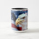 American Bald Eagle with United States Flag backdrop. The Phrase " Freedom is the sure possession of those alone who have the courage to defend it."